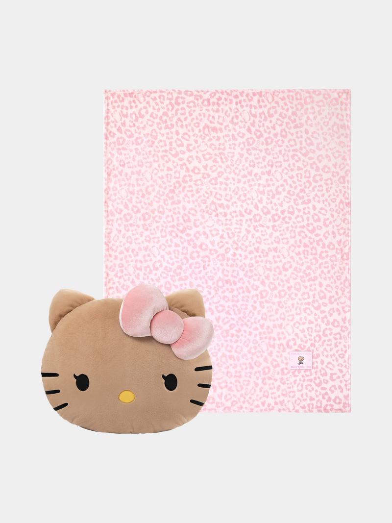 "Hello Kitty" Cushion & Scented Flannel Throw Set – Denim